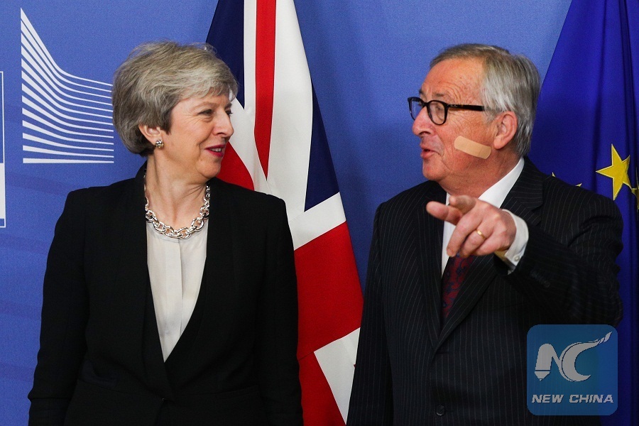 BRUSSELS, Feb. 21 (Xinhua) -- European Commission President Jean-Claude Juncker and British Prime Minister Theresa May made fresh efforts on Wednesday to unlock the Brexit stalemate. Without a breakthrough, as expected, they pledged to talk again before the end of the month.