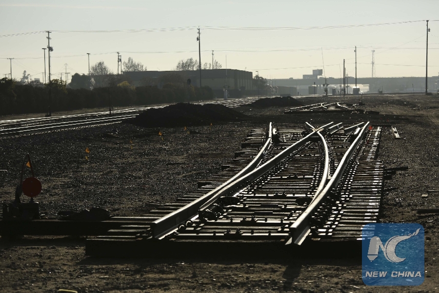File Photo: A set of railroad tracks is pictured prior to a ceremony for the California High Speed Rail in Fresno, California Jan. 6, 2015. (Xinhua/REUTERS)