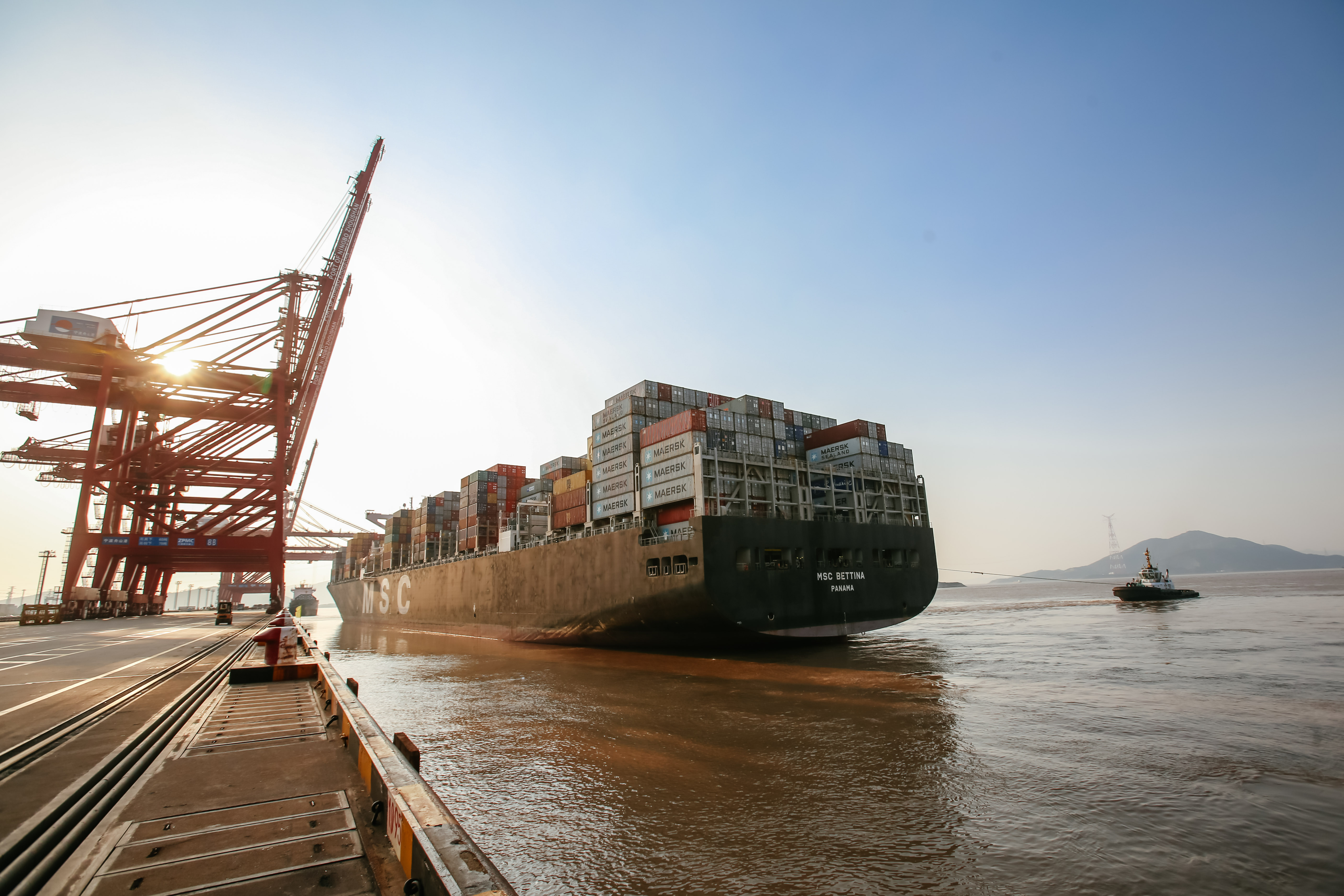 A cargo ship leaves the Port of Ningbo for Spain. (Xinhua/Zhang Cheng)