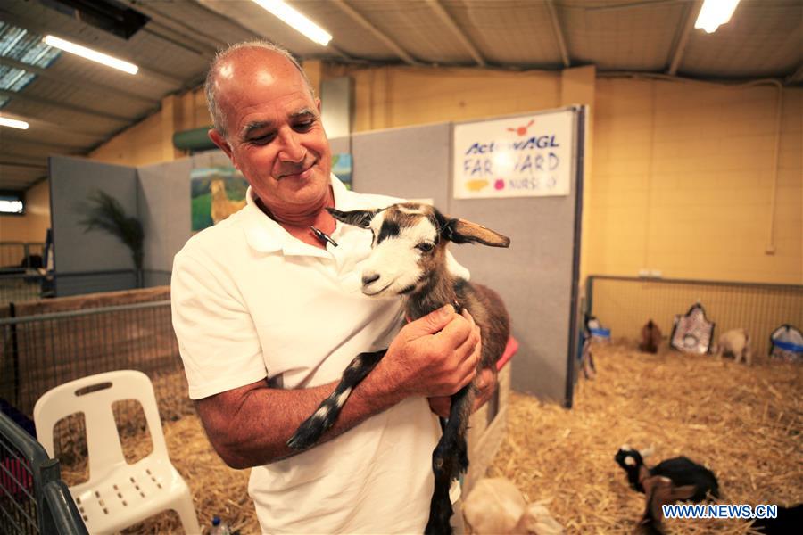 A visitor pets a lamb during the Royal Canberra Show in the Exhibition Park in Canberra, Australia, Feb. 22, 2019. The annual Royal Canberra Show runs this year from Feb. 22 to 24. (Xinhua/Pan Xiangyue)