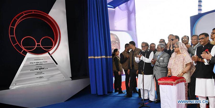 Bangladeshi Prime Minister Sheikh Hasina unveils the foundation plaque of China-funded mega-river tunnel project in Chattogram, Bangladesh, Feb. 24, 2019. The mining work of a China-funded mega-river tunnel in southeastern Bangladesh started on Sunday. Bangladeshi Prime Minister Sheikh Hasina inaugurated the main structural work of the project by unveiling its foundation plaque on Sunday morning. China Communication Construction Co Ltd (CCCC) has been constructing the "Bangabandhu Sheikh Mujibur Rahman Tunnel" beneath Karnaphuli river with Chinese soft loans. The tunnel construction is to make Chattogram "One City Two Towns" based on a model of east and west Shanghai of China. The 3.4-km-long four-lane tunnel, the first of its kind in Bangladesh and Southeast Asia, will shorten the ride between Chattogram Airport to a planned industrial park from four hours to 20 minutes. (Xinhua/PID)