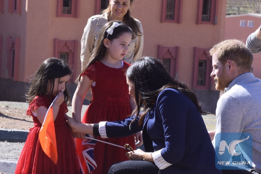 RABAT, Feb. 24 (Xinhua) -- Britain's Prince Harry and his wife Meghan Markle visited Sunday educational facilities in the rural town of Asni near Morocco's central city of Marrakech to show support to girls' education and promote gender equality.