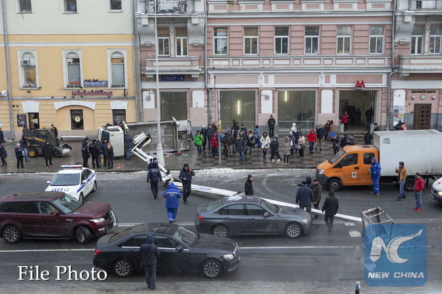 MOSCOW, Feb. 24 (Xinhua) -- Two pedestrians were killed and three injured in a car accident on a main street in the Russian city of St. Petersburg on Sunday, Russia media reported.