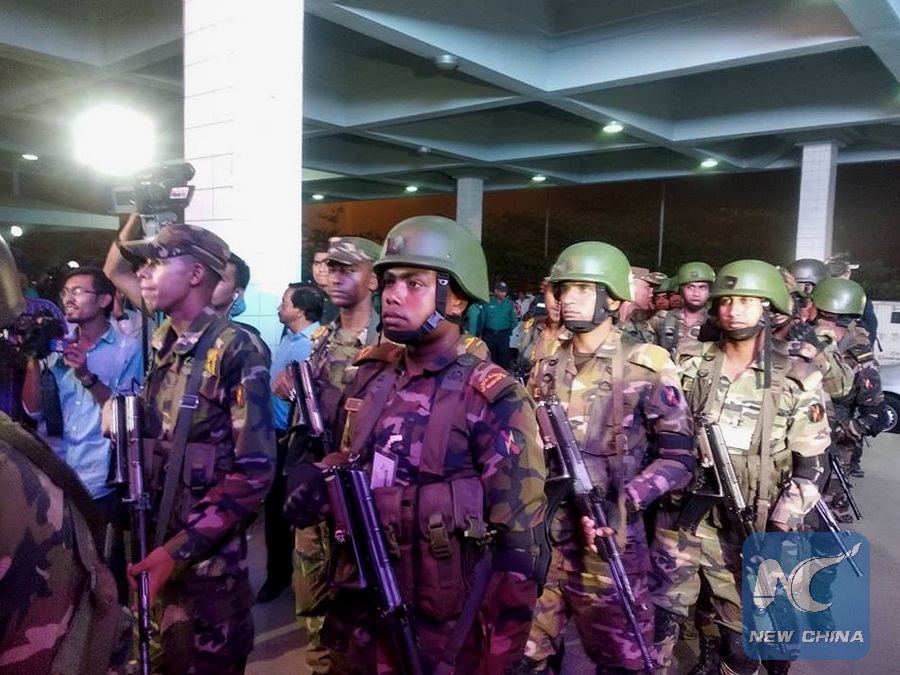Bangladeshi commandos stand guard at the Shah Amanat International Airport in Chattogram, Bangladesh, on Feb. 24, 2019. (Xinhua/Stringer)