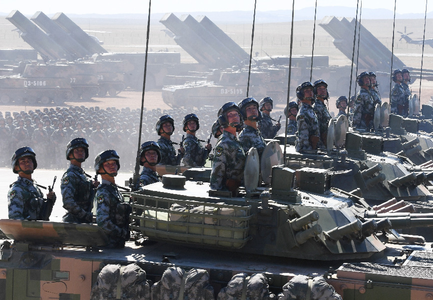 Troops are seen at Zhurihe training base in north China's Inner Mongolia Autonomous Region, July 30, 2017. (Xinhua/Wu Xiaoling)