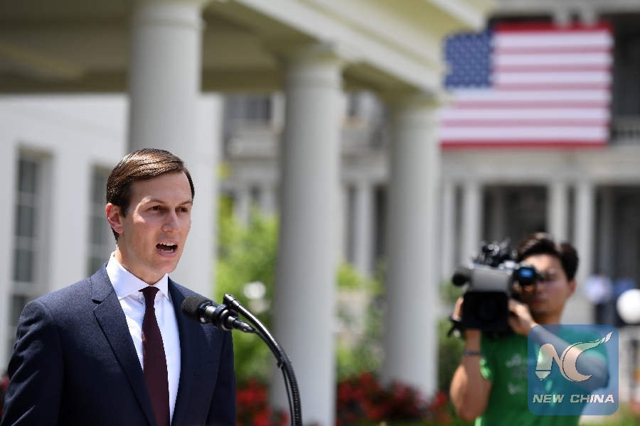 File Photo: White House Senior Advisor and U.S. President Donald Trump's son-in-law Jared Kushner reads a statement after testifying at a closed-door hearing before the Senate Intelligence Committee, at the White House in Washington D.C., the United States, on July 24, 2017. (Xinhua/Yin Bogu)