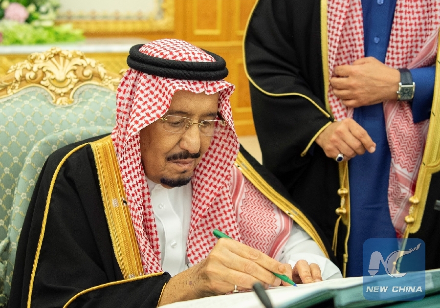 File Photo: Saudi Arabia's King Salman bin Abdulaziz Al Saud signs documents during the 2019 budget meeting in Riyadh, Saudi Arabia Dec. 18, 2018. (Xinhua/REUTERS)