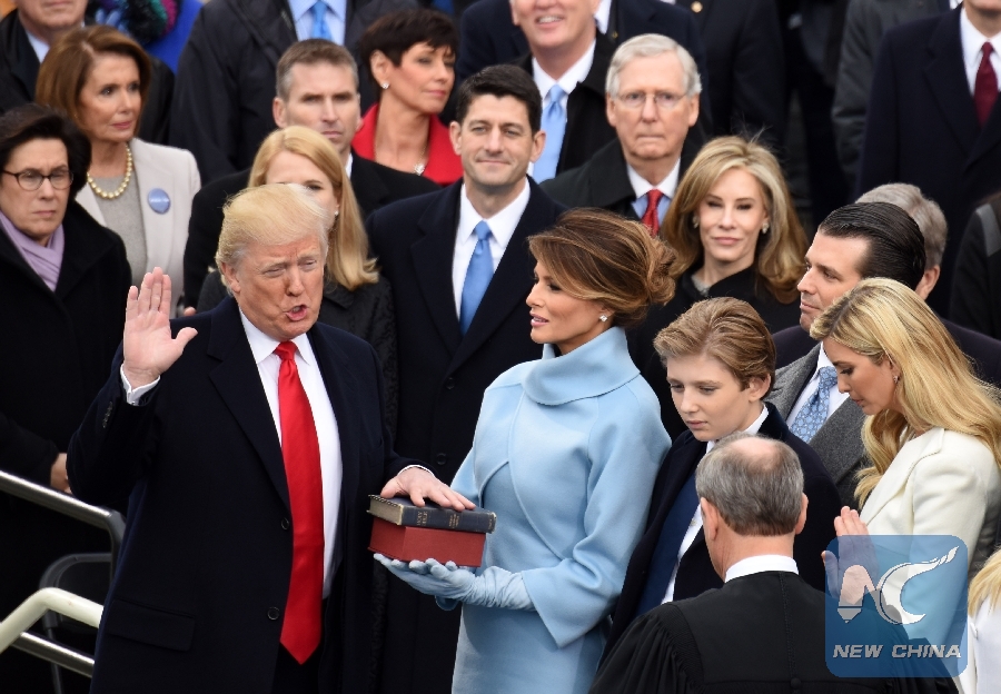 File Photo: U.S. President Donald Trump(L) takes the oath of office during the presidential inauguration ceremony at the U.S. Capitol in Washington D.C., the United States, on Jan. 20, 2017. Donald Trump was sworn in as the 45th President of the United States. (Xinhua/Yin Bogu)
