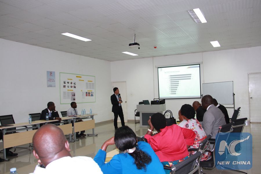 A Chinese teacher gives a lecture to Ugandan officials in Kampala, capital of Uganda, Feb. 2, 2019. (Zhang Gaiping/Xinhua)