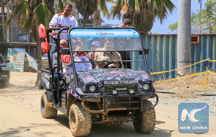 Venezuela's President Nicolas Maduro drives an all-terrain vehicle during his visit to the construction site of a hotel complex in Caraballeda, Venezuela March 2, 2019.
