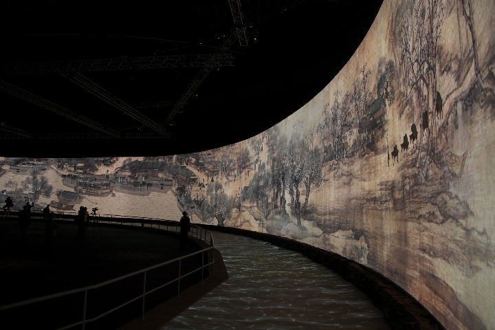 Visitors view the animated version of the Riverside Scene During the Qingming Festival at Macao East Asian Games Gymnasium in Macao, south China, March 25, 2011. (Xinhua)