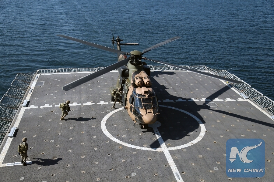 A military helicopter takes part in the "Blue Homeland 2019" naval military exercise in Izmir, Turkey, on March 5, 2019.(Xinhua photo)
