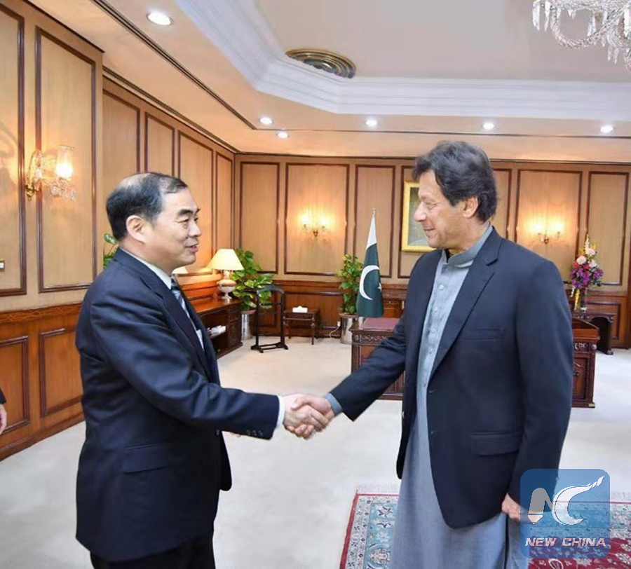 Visiting Chinese Vice Foreign Minister Kong Xuanyou met with Pakistani Prime Minister Imran Khan on March 6, 2019. (Xinhua/Chinese Embassy in Islamabad)