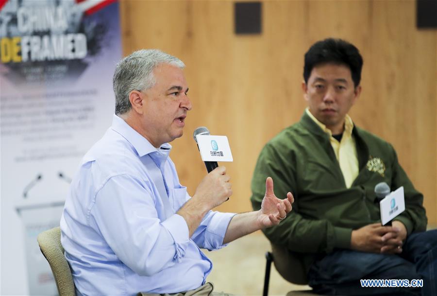 David Firestein (L), inaugural executive director of the University of Texas at Austin's China Public Policy Center, speaks at an event during the ongoing South by Southwest (SXSW) Conference and Festivals in Austin of Texas, the United States, March 10, 2019. Innovation will be an important engine that drives forward U.S.-China cooperation in the future, David Firestein has said. (Xinhua/Wang Ying)