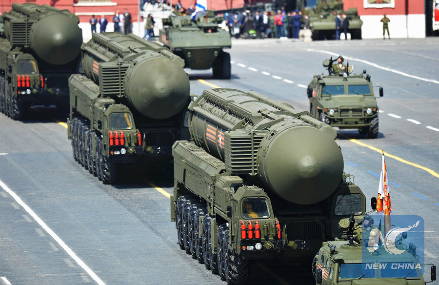 A Russian Yars RS-24 intercontinental ballistic missile system drives during the Victory Day military parade in Moscow on May 9, 2015. (AFP PHOTO)