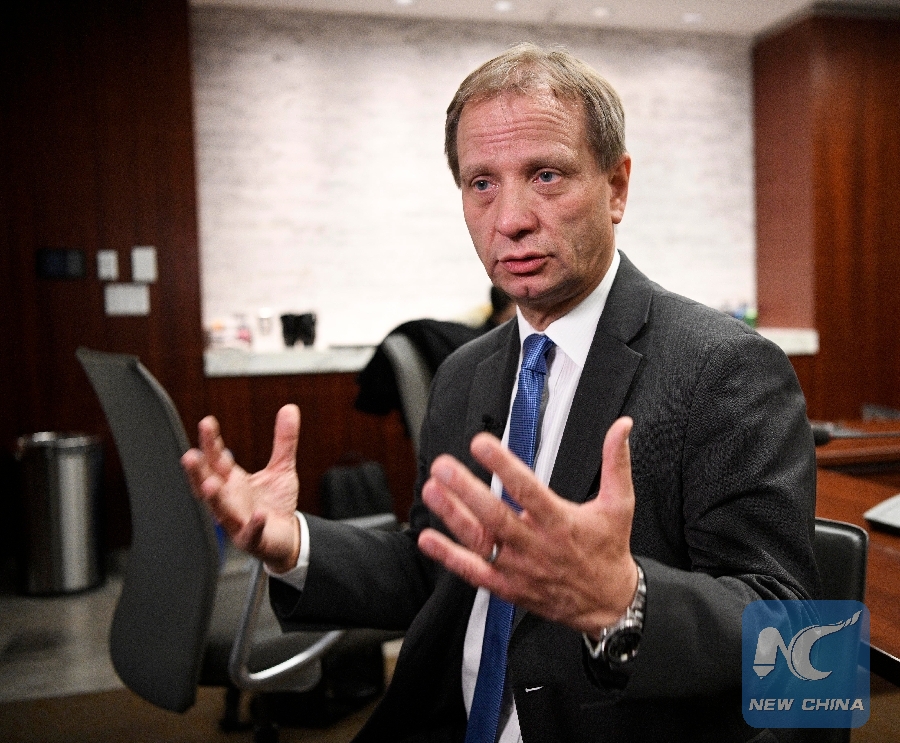 International Monetary Fund (IMF)'s senior resident representative for China Alfred Schipke speaks during an interview in Washington D.C., the United States, on March 13, 2019. (Xinhua/Liu Jie)