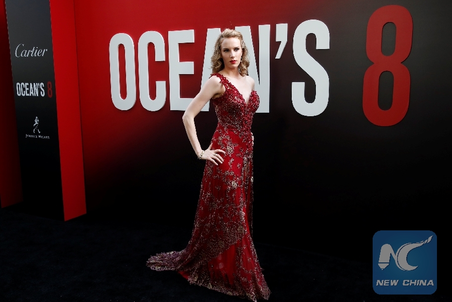 Actress Charlotte Kirk poses as she arrives at the world premiere of the film "Ocean's 8" at Alice Tully Hall in New York City, New York, U.S., June 5, 2018. (Xinhua/REUTERS)