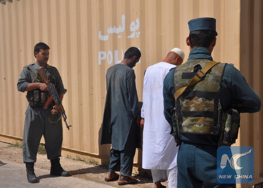 File Photo: Two suspected Taliban militants stand handcuffed after being captured in Shiberghan city, capital of Jawzjan province, north of Afghanistan, June 27, 2018. (Xinhua/Mohammad Jan Aria)
