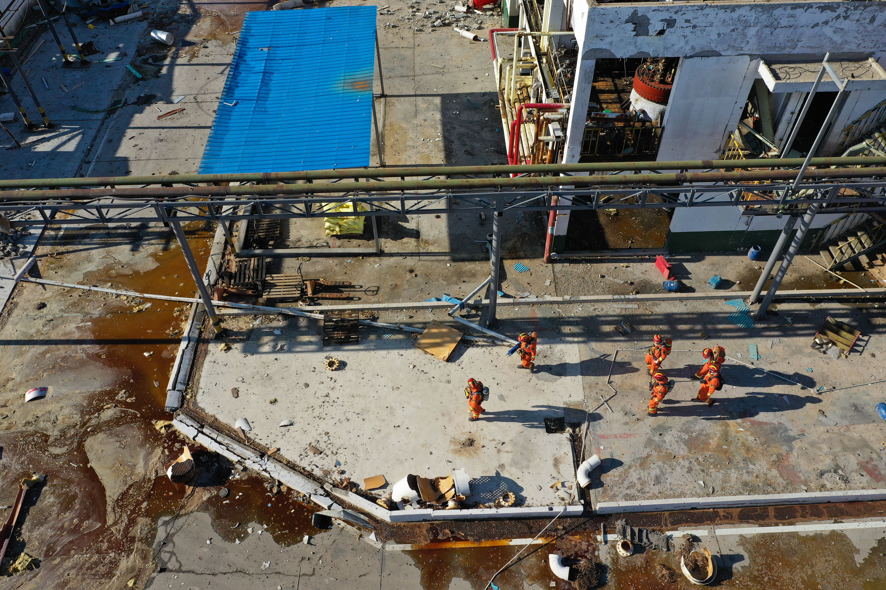 The explosion happened at about 2:48 p.m. Thursday following a fire that broke out in a chemical factory located in an industrial park in Xiangshui County of Yancheng City, according to local authorities.