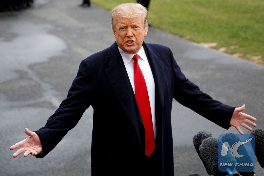 U.S. President Donald Trump speaks to reporters on the South Lawn of the White House in Washington D.C., the United States, March 22, 2019. (Xinhua/Ting Shen)
