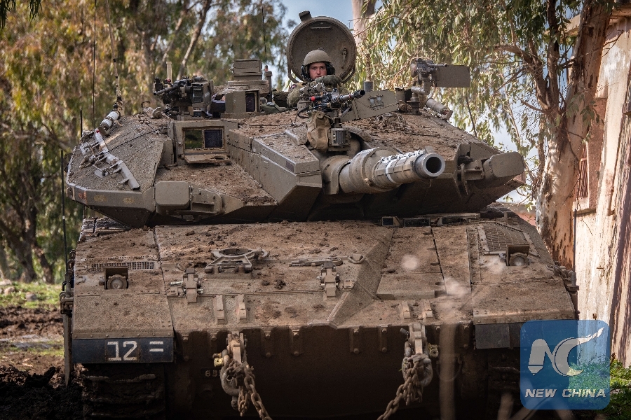 File Photo: An Israeli tank takes part in a training exercise in the Israeli-occupied Golan Heights near the Syrian city of Quneitra on Feb. 12, 2019. (Xinhua/Ayal Margolin-JINI)