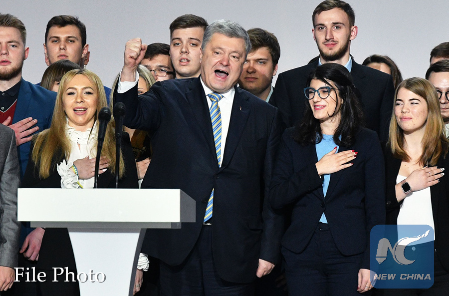 KIEV, March 28 (Xinhua) -- Ukrainian actor Volodymyr Zelensky and incumbent President Petro Poroshenko have the best chances to win the first round of the country's presidential election and make it to the run-off, the government-run Ukrinform news agency said on Thursday, citing a public opinion poll.