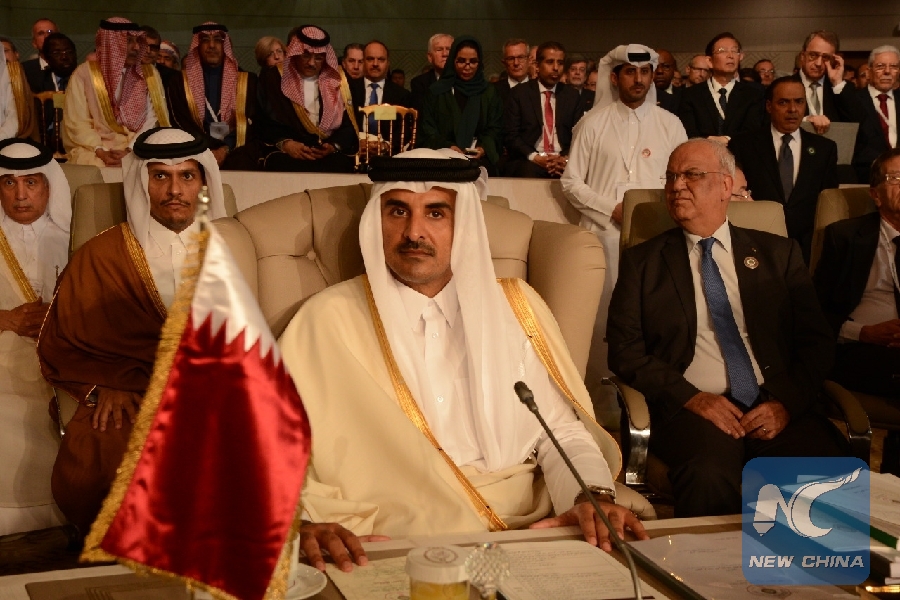 Photo of Qatari Emir Sheikh Tamim Bin Hamad al-Thani at the 30th Arab Summit in Tuinis, capital of Tunisia, taken on March 31, 2019. (Xinhua photo)