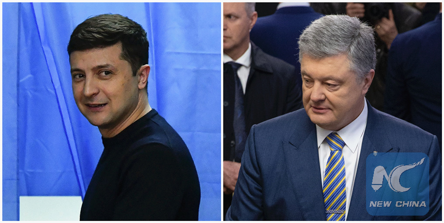 KIEV, March 31 (Xinhua) -- The national exit poll showed on Sunday that Ukrainian actor Volodymyr Zelensky and incumbent President Petro Poroshenko gained the largest number of votes in the first round of the country's presidential election and make it to the run-off, the Ukrainian government-run Ukrinform news agency said.