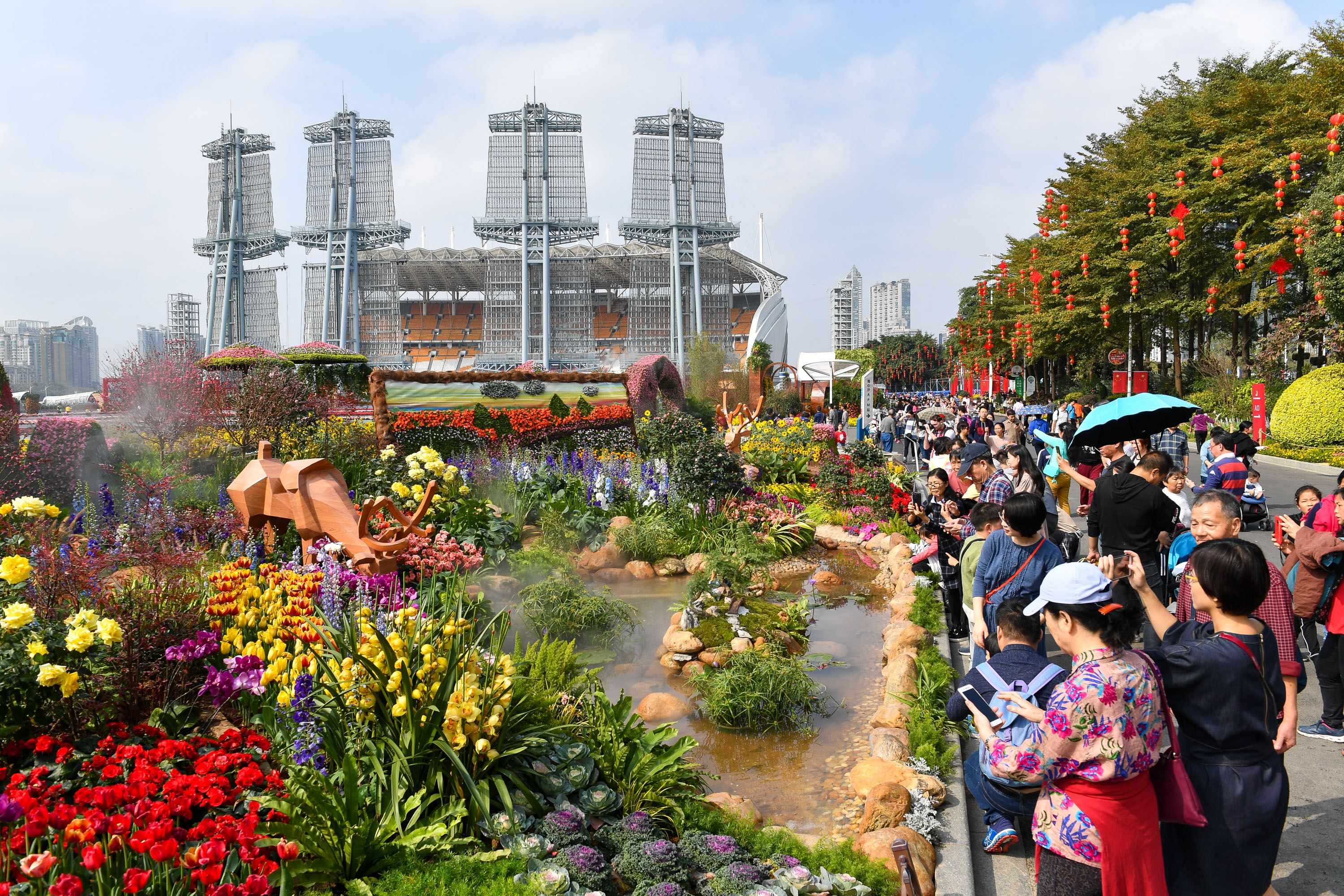 Visitors are seen at a horticultural fair in Haixinsha Island in Guangzhou, capital of south China's Guangdong Province, Feb. 4, 2019. (Xinhua/Liu Dawei)