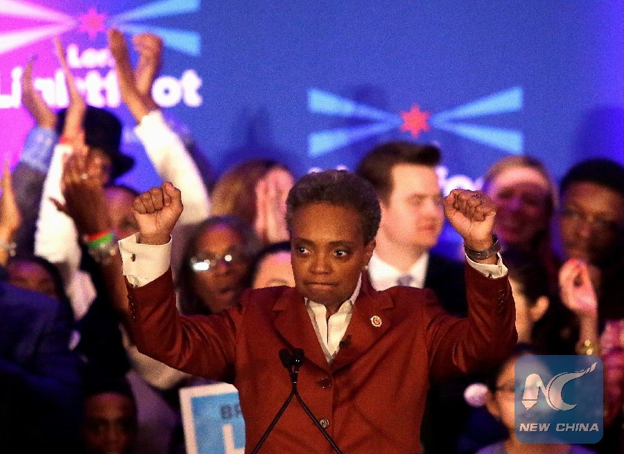 CHICAGO, April 7 (Xinhua) -- Lori Lightfoot, the newly elected mayor of Chicago, pledged on Saturday to do everything possible to strengthen the city's relationship with China.