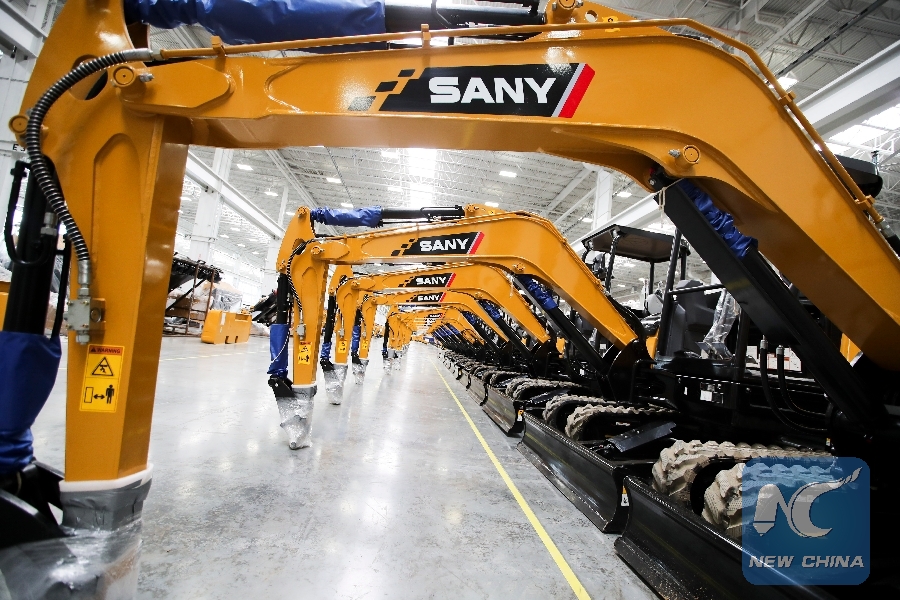 Excavators are seen at the plant of SANY America in Peachtree City, Georgia, the United States, March 29, 2019. (Xinhua/Wang Ying)