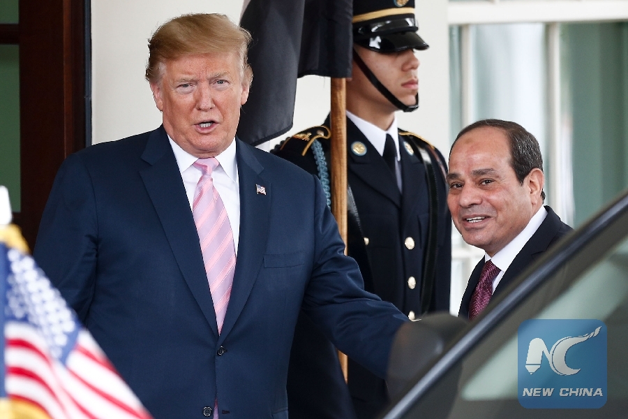 WASHINGTON, April 9 (Xinhua) -- U.S. President Donald Trump and visiting Egyptian President Abdel-Fattah al-Sisi discussed regional security and water issues Tuesday at the White House.