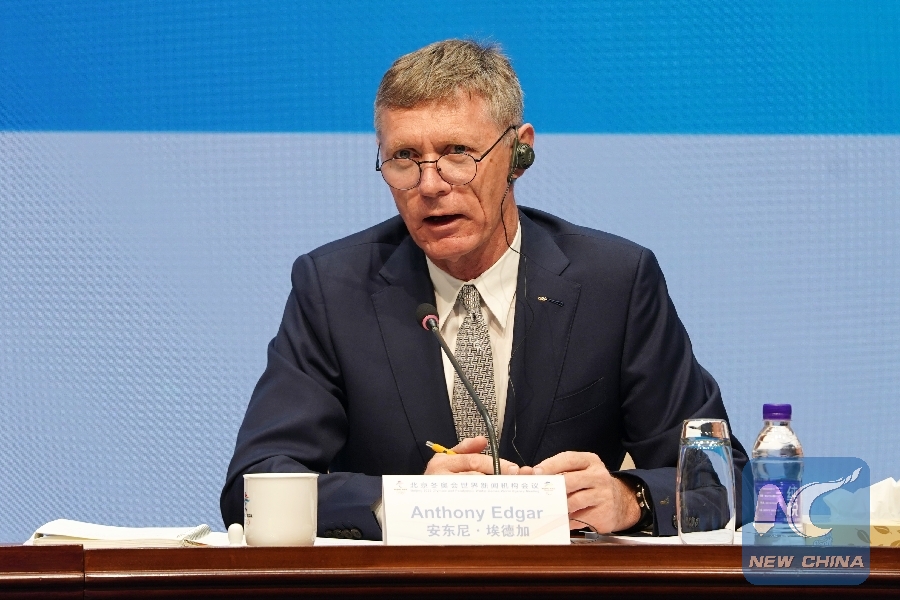 Anthony Edgar, Head of IOC Media Operations and OIS, speaks during the Beijing 2022 Olympic and Paralympic Winter Games World Agnecy Meeting in Beijing, China on April 11, 2019. (Xinhua/Ju Huanzong)