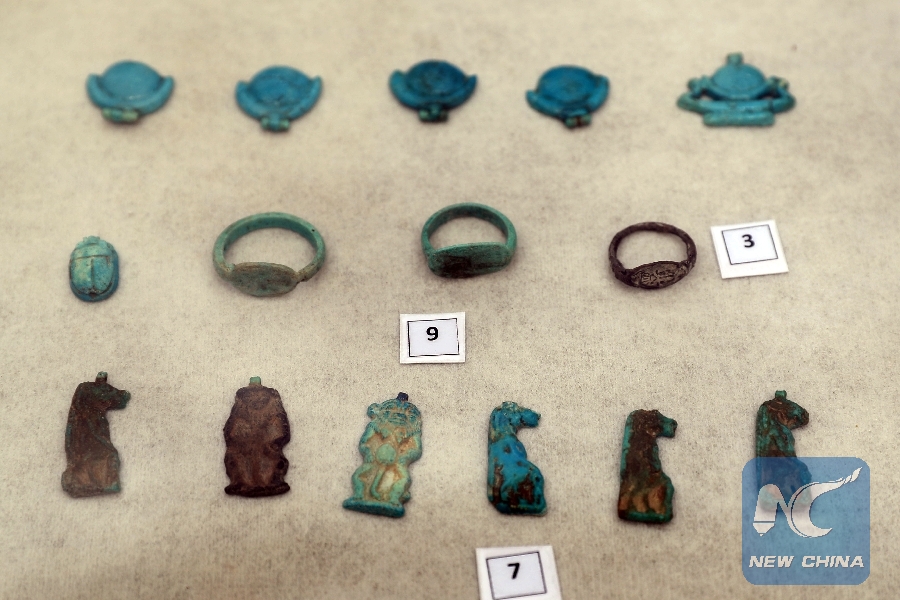 Photo taken on April 13, 2019 shows the unearthed artifacts at the burial ground Saqqara, Egypt. (Xinhua/Ahmed Gomaa)