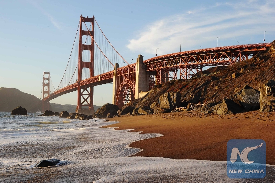 File photo taken on June 11, 2013 shows the famous scenic spot Golden Gate Bridge in San Francisco, the United States. (Xinhua/Li Jian)