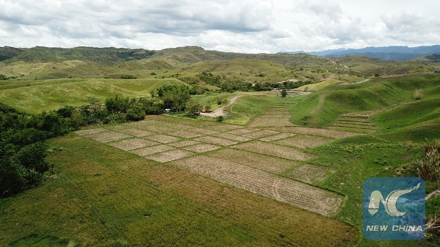 Aerial photo taken on June 8, 2018 shows fields which will benefit from a China-funded irrigation project at Pinukpuk City, the Philippines. (Xinhua/Wang Yu)