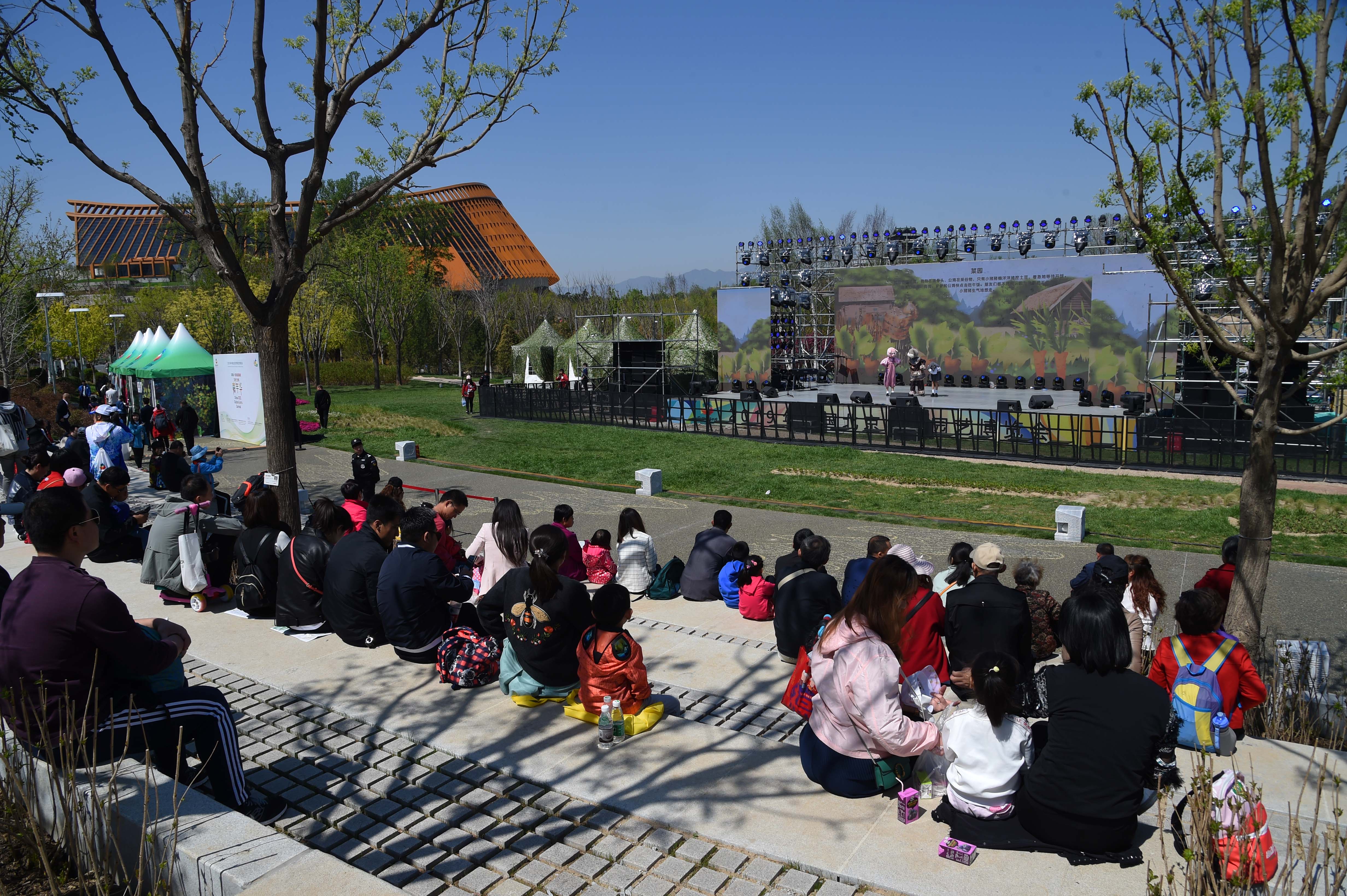 Photo taken on May 1, 2019 shows tourists watch a performance at the Beijing International Horticultural Exhibition. (Xinhua/Ren Chao)