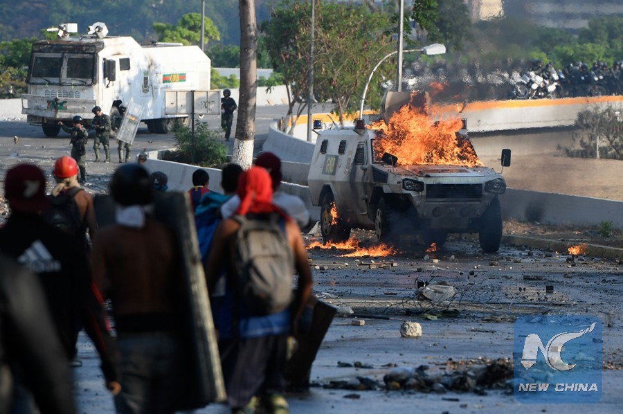 Anti-government protesters clash with security forces in Caracas, Venezuela, during the commemoration of May Day on May 1, 2019. (AFP Photo)