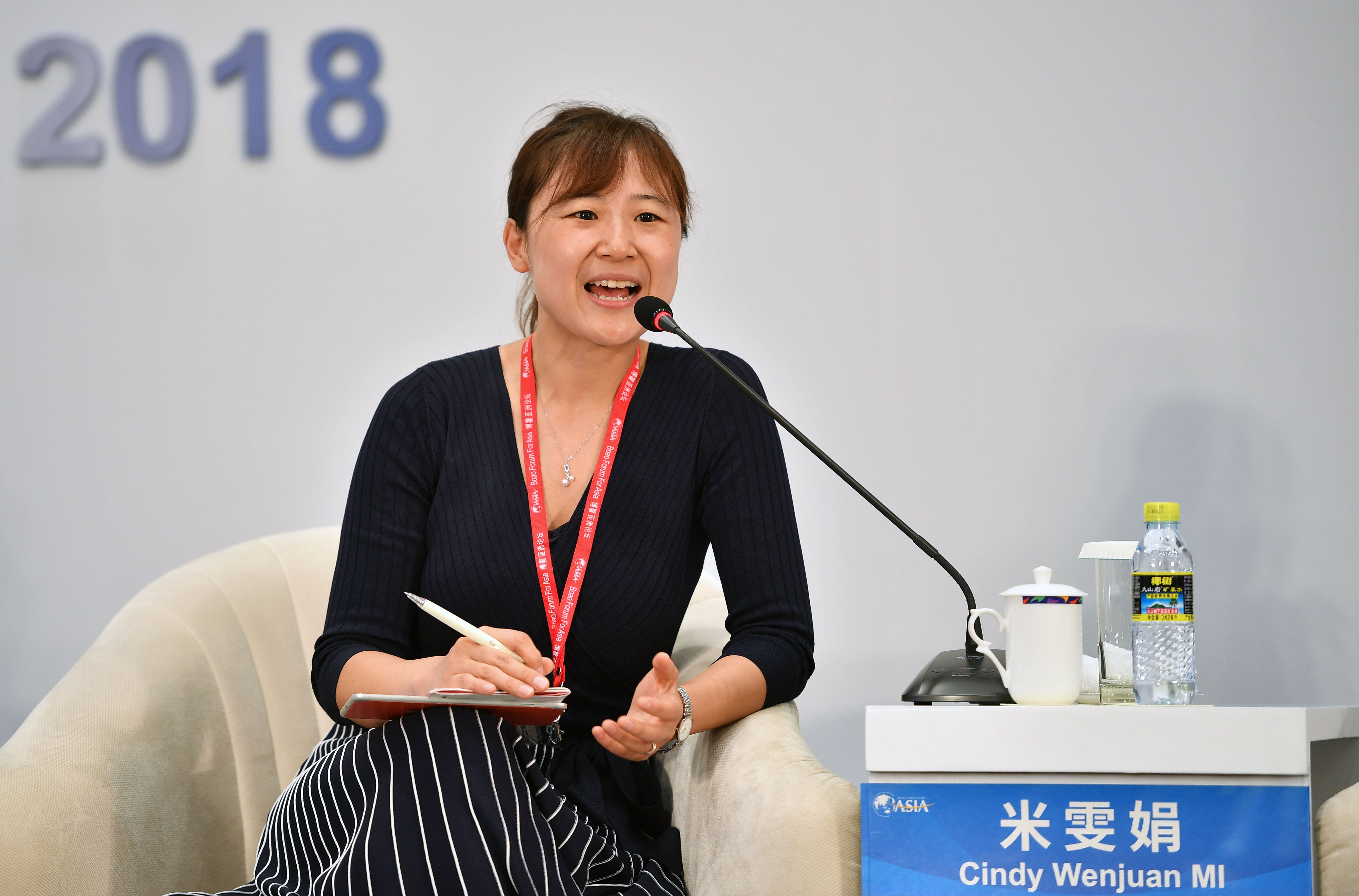 Mi Wenjuan, founder and CEO of VIPKID, speaks at the "Private Education" session during the Boao Forum for Asia Annual Conference 2018 in Boao, south China's Hainan Province, April 11, 2018. (Xinhua/Guo Cheng)