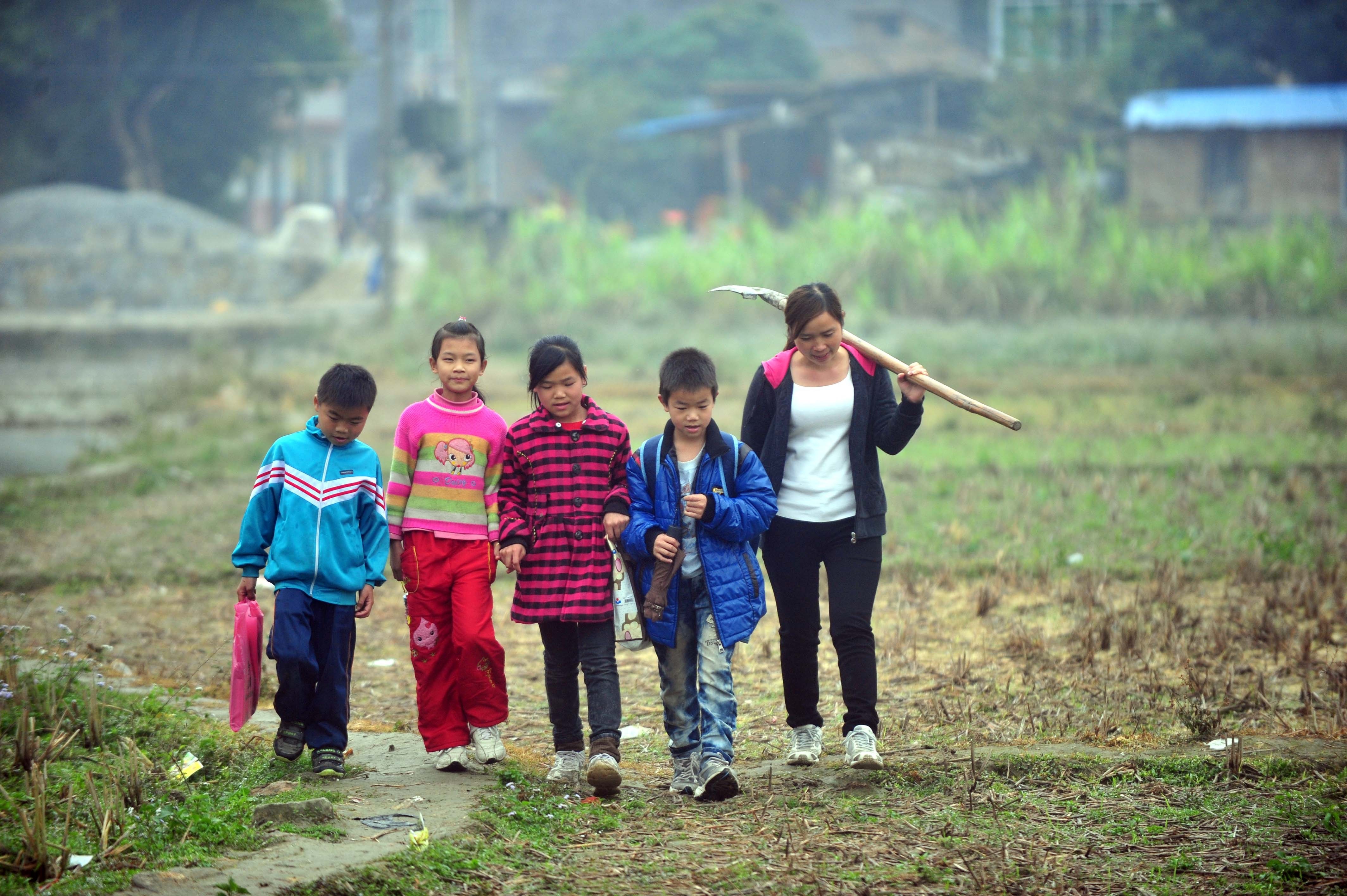Liang Lina and four students from her village walk back to Luhe Village in Wushi Township of Luchuan County, south China's Guangxi Zhuang Autonomous Region, Feb. 25, 2013. (Xinhua/Huang Xiaobang)