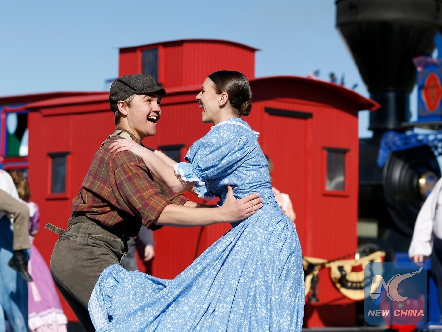 A performance is held to celebrate the 150th anniversary of the completion of the first U.S. transcontinental railroad, at the Golden Spike National Historical Park at Promontory Summit, Salt Lake City, the United States, (Xinhua/Li Ying)