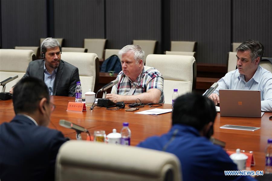 Chris Solly (C), program lead of the Executive Learning Pathway (ELP) faculty, speaks during the first ELP for Beijing 2022 held in Beijing, capital of China, on May 13, 2019. (Xinhua/Ju Huanzong)