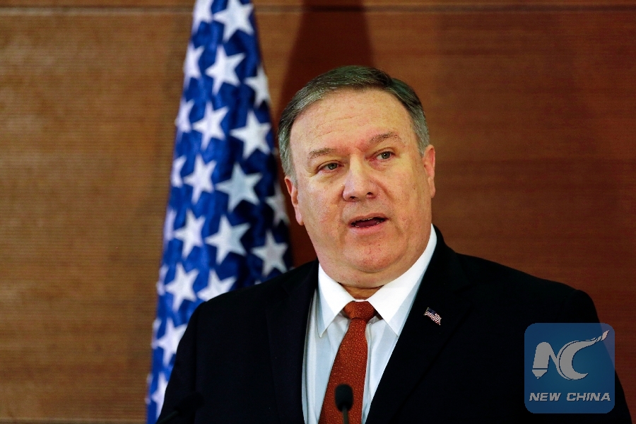 File Photo: U.S. Secretary of State Mike Pompeo delivers a speech at the American University in Cairo, Egypt, Jan. 10, 2019. (Xinhua/STR)