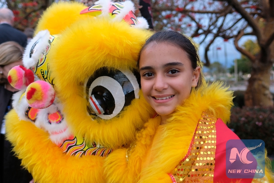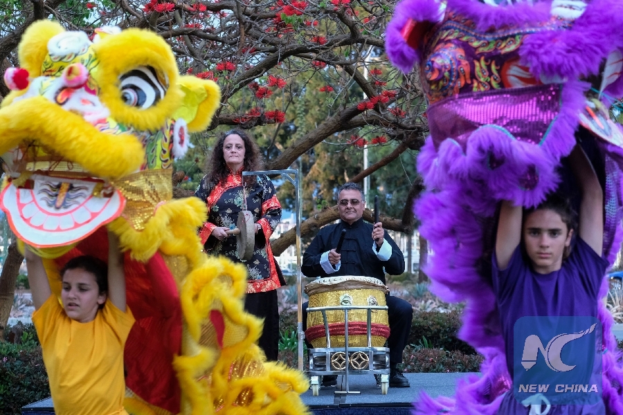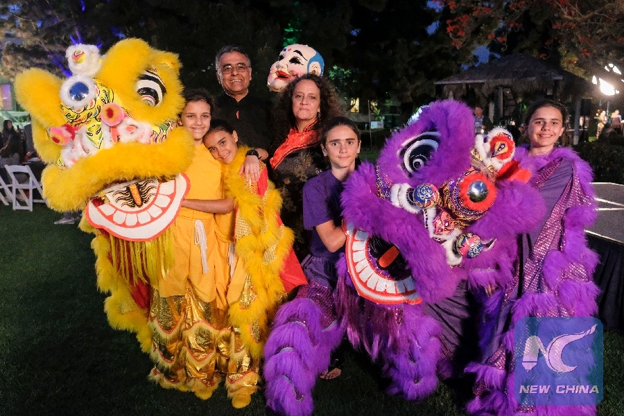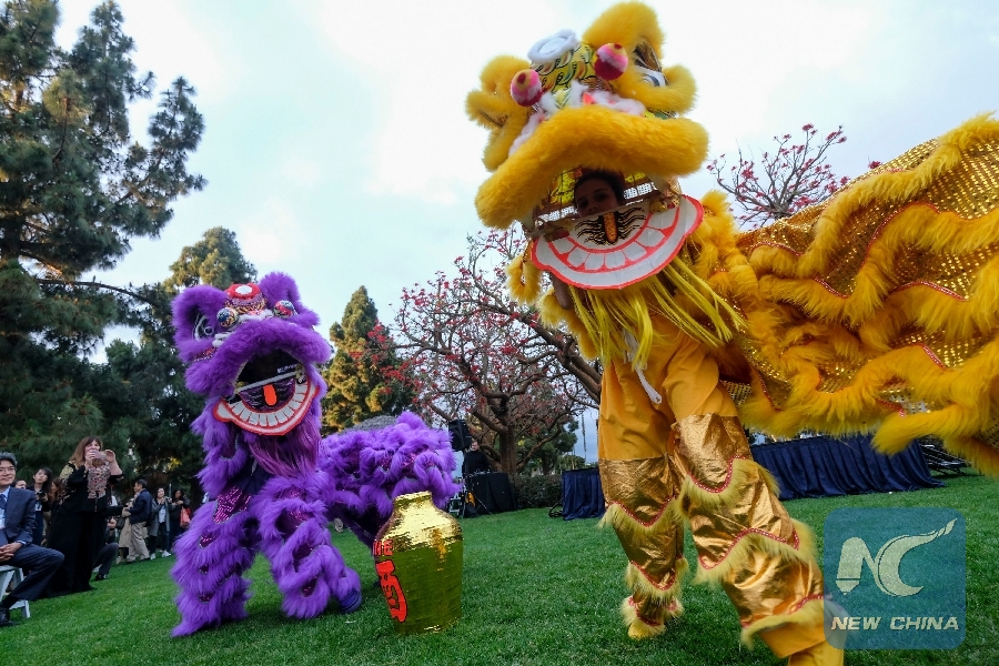 SAN DIEGO, the United States, May 13 (Xinhua) -- Sinuous yellow and purple dancing lions were cavorting around the verdant lawn of the San Diego Sheraton Convention Center as the sun set over the inlet on Sunday.