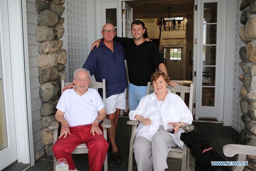 James E. Bryant (L, front), his wife Dorothy Bryant (R, front), son James Bryant (L, rear) and grandson Ben Bryant are pictured in Marblehead, Massachusetts, the United States, 2015. James Bryant will never forget the day when his 93-year-old father went back to his bedroom and came back with a flight brief case containing papers related to the training and assignments he took as a U.S. Flying Tiger pilot during the World War II. As a "remarkable" yet "humble" man and a loving father, James E. Bryant did not show any detailed evidence about his war experience until about three years ago, the son recalled. (Xinhua)