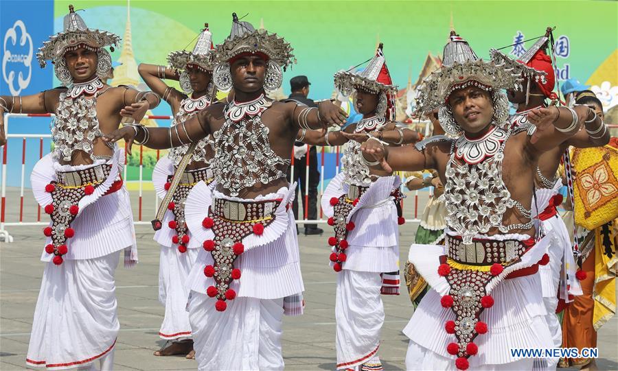 Actors from Sri Lanka perform during the Asian Civilization Parade in the Olympic Park in Beijing, captial of China, May 16, 2019. A week-long Asian Civilization Parade showcasing the continent's diverse and charming civilizations kicked off in Beijing Thursday. (Xinhua/Yin Gang)