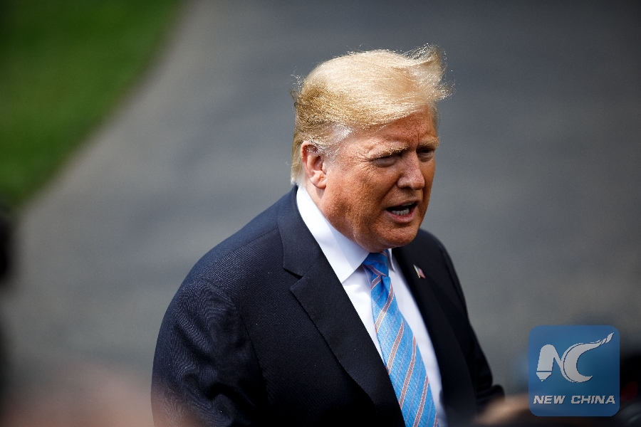 U.S. President Donald Trump speaks to reporters before leaving the White House in Washington D.C., the United States, on May 14, 2019. (Xinhua/Ting Shen)