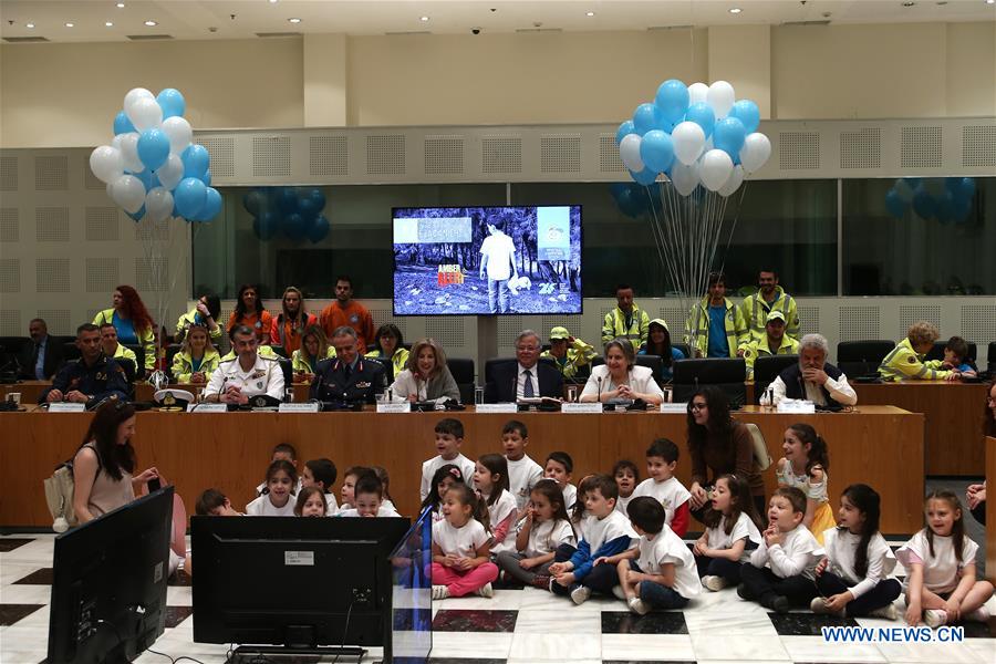 A group of children attend an event organized by the local NGO "The Smile of the Child" in Athens, Greece, on May 20, 2019. A total of 299 children went missing in Greece last year and 257 of them were eventually found, according to the police report presented during an event organized by the local NGO "The Smile of the Child" on the occasion of the International Missing Children's Day which is marked on May 25 every year. (Xinhua/Marios Lolos)