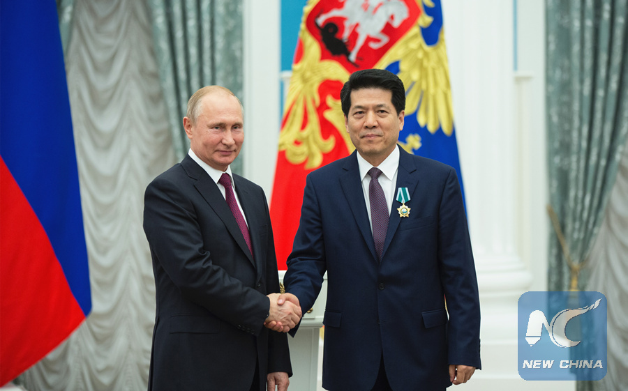 Putin signed a presidential decree earlier this month awarding Li with the honor for his contribution to strengthening friendship and cooperation between the two countries as well as his fruitful work on the convergence and mutual enrichment of their cultures.