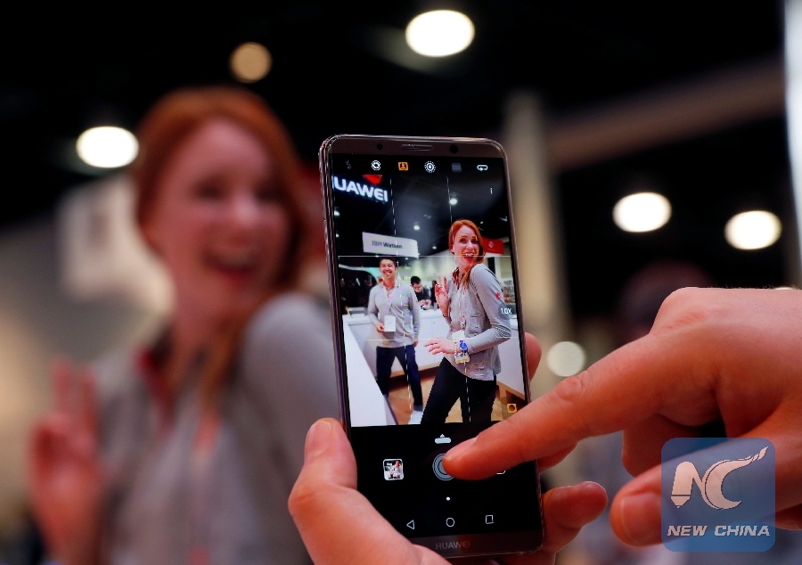 File Photo: An exhibitor takes a photo with a Huawei Mate 10 Pro during the 2018 CES in Las Vegas, Nevada, U.S. January 9, 2018. (Xinhua/REUTERS)